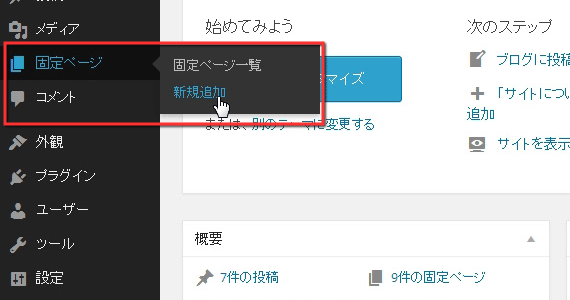 固定ページの新規追加手順